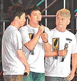昨晚会,刘德华从头到晚穿梭在舞台上,先与郑秀文合唱〈喝采〉,再与任贤齐演唱台语歌〈天下第一等〉鼓励台湾,稍晚也与谭咏麟、陈百祥、温拿五虎演唱〈朋友〉,日前他自费来台赈灾,连赶两台,回港后又与曾志伟合办“88水灾关爱行动”,为台湾出钱出力。