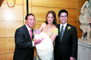 千亿新抱徐子淇与丈夫李家诚的次女李晞儿前日满3个月大,下午先举行“ Secret Garden”儿童茶会,晚间又举行豪华百日宴,估计花费约300万元。虽然不及姐姐晞彤当初连摆两晚的800万元“发实宴”,但同样深受宠爱。