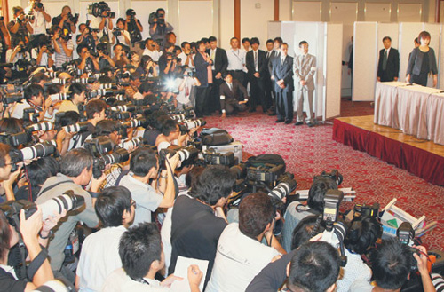 中新网9月18日电 酒井法子在东京千代田饭店举行的谢罪记者会,日本多家媒体都是全程直播,不少日本记者更是直言指出,她的架势远胜过昨日上任的新首相鸠山由纪夫。