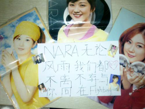 “朝鲜日报”消息,在声援张娜拉的帖子中,包括粉丝们用韩文写的“娜拉,要挺住哦!爱你!”、“娜拉,加油!”等文字。还有很多不同年龄层的粉丝按照自己的方式支持张娜拉。张娜拉的所属经纪公司方面表示:“中国粉丝们以公开方式向张娜拉集体发来声援帖子。这对于正在经受痛苦的张娜拉而言是莫大的力量。”