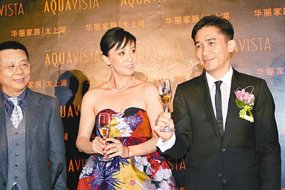中新网11月30日电 继不丹大婚之后,梁朝伟刘嘉玲29日首次回家乡苏州“探亲”,并高调宣布购入总值超过1600万人民币的豪宅“华丽家族.太上湖”,这是苏州太湖旁边一座三层楼高的现代经典主义独栋别墅, 据称该楼盘的老板夫妇为其多年好友,因此,刘嘉玲也给足老友面子,携夫君梁朝伟共同出席楼盘揭幕仪式。