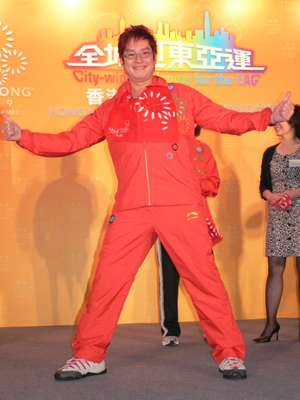 中新网12月1日电 谭咏麟昨日以一身红装及染红发出席迎接东亚运动会的活动,谭咏麟不仅在活动中透露儿子晓风爱打篮球外,还对时下的娱乐热点进行点评,更自曝曾遭女歌迷“胸袭”。