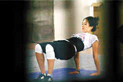 得罪导演当然没有好下场,接下来那一整晚时间,章子怡被罚留在练功房练习踢腿、拗腰、掌上压,直练到深夜11时才返房休息,出来时已全身湿透、精疲力尽。 (绍娜)