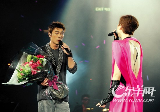 对于送花举动,许志安解释道:“因为首场演出时我没有送花篮给她,所以这次补回。(你送了多少朵玫瑰?)花店里剩下14朵,但我觉得不吉利,所以送12朵。”有记者立即表示12支的花语代表“我爱你”,许志安露出“惊讶”表情:“我不懂这些的。”郑秀文在首场演出时指自己的感情生活“干旱得像撒哈拉沙漠”,问许志安会不会帮她“摆脱困境”,许志安笑着表示:“如果她要拍拖的话,追她的男人应该会从弥敦道排到沙头角。”再问他有无机会复合,许志安立即以拍大合照为由离开。陈明辉