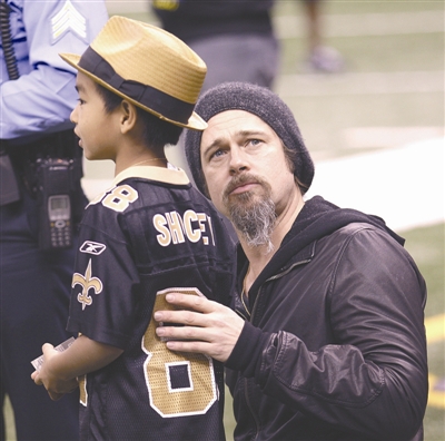 美国当地时间1月16日,布拉德·皮特带着养子马多克斯和导演斯派克·李现身美式橄榄球赛场,在比赛间隙,皮特利用明星身份带着儿子与偶像队员来了个亲密接触,满足了球迷儿子的小心愿。
