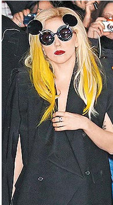 昨天,乐坛百变女王Lady Gaga以米老鼠眼镜的不寻常造型出席歌友会。她呼吁歌迷上她的购物网购买她设计的T恤,所得将全数捐给海地灾民。