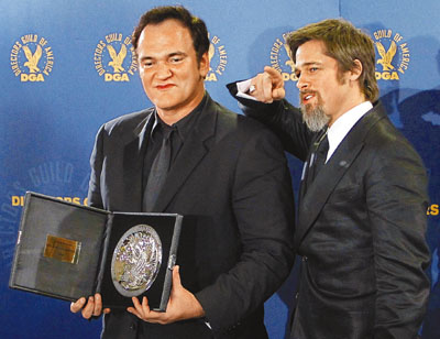 香港“文汇报”消息,上周六在洛杉矶举行的本年度美国导演公会奖,作为候选电影《无耻混蛋》的主角,皮特特意陪同导演昆汀出席已让人有点意外,全因前者连金球奖都照样缺席。原来他是想借和女友朱莉双双露面,粉碎外间有关他俩分手的传闻。