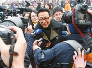 昨日,全国政协十一届三次会议在北京开幕,文体明星代表成为追访的焦点。杨澜、央视名嘴朱军、崔永元、《新闻联播》播音员李瑞英、演员陈道明、著名歌唱家关牧村、韩红、导演冯小刚、体育明星刘翔遭围堵采访。刘翔在政协会议上遭围堵露求救表情,离场时学聪明跑步开溜,让记者们一路狂追。(春城晚报)