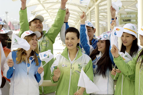 中新网3月22日电 上周,由王平久作词、何沐阳作曲、谭晶演唱的歌曲《世界》当选为世博会志愿者主题歌。周中,世博会志愿者宣传大使谭晶亲临上海,与众多志愿者一起进行了歌曲《世界》的MV拍摄,宣传世博志愿精神。
