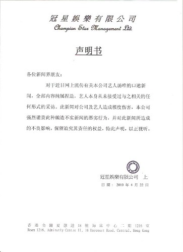 声明书全文如下