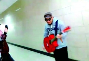 上传视频的网友表示自己是在德胜门附近的地下通道里拍下这一画面的,还写道:“虽然他戴着眼镜,可是左看右看,一点都不像cos(模仿),越看越像张震岳本人。”