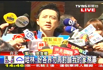 中新网4月30日电 据台湾TVBS报道,综艺大哥张菲之前在采访时,说哈林(庾澄庆)应该要多照顾伊能静,才不会让外人趁隙而入,今天庾澄庆面对这样的说法,表示希望大家不要再引用错误的讯息,提及他的家人。