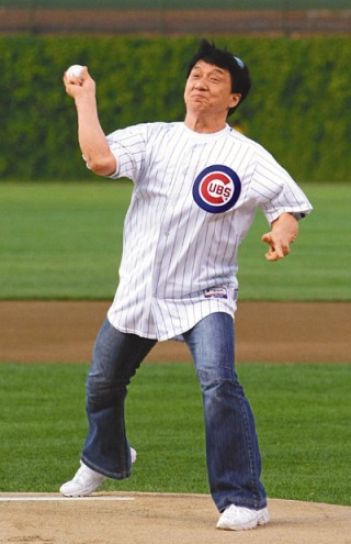 中新网5月27日电 成龙昨日身穿棒球衫,出现在芝加哥小熊队的主场,担任小熊队主场对道奇队的首战开球贵宾,成龙大哥虽然会踢足球和打武术,但投球姿势怪异,最后棒球更提早落地,十分搞笑。
