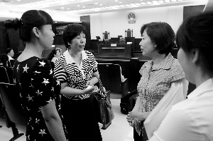 法官随后只得向旁听人员说明情况,旁听人员对关之琳一方无视法律规定的行为非常不满。雅鹿集团到场的一位顾问招呼另一被告好友世界商场的代理人,“撤诉了,可以走了。”(如图)好友世界商场的代理人此时也不明就里,“他们和解的事,我们都不知道,还准时来参加庭审。”法官、书记员及两被告的代理人,一直苦等关之琳的代理人来办理撤诉手续,但直到11时,该代理人才姗姗来迟。“你们浪费诉讼资源,对你们提出警告。”面对法官的批评,该代理人一言不发。(首席摄影记者 吴宁/摄)