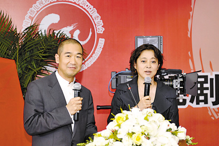昨天的成立大会更像是一场众导演的聚会,不少人都身穿便服到场,而主持人倪萍和张国立更是大搞冷幽默。倪萍先把“矛头”对准央视:“中央台影视部的汪国辉主任,你们最招人恨了。到底什么样的戏能上你们央视呀?今天倒是讲讲清楚!”接着她话锋一转,又把责任推给张国立:“这事跟我没关系,是张国立教我说的。”被“陷害”的张国立只好干笑两声。会场气氛分外轻松。