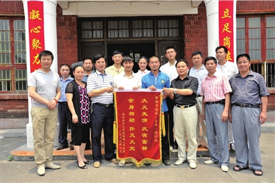 昨天,电视剧《雷锋》正在湖南紧张拍摄中,湖南洪江市黔城镇政府给剧组送来了一面写着“大火无情,庆有雷锋,舍身相助,扑灭火灾”的锦旗。雷锋的扮演者田亮代表剧组接收了锦旗。