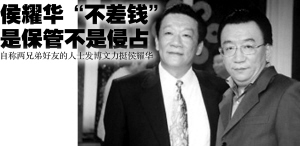 前天凌晨两点,一位名叫王魏东至的网友第一次发表博文,大谈其对“侯耀华是否侵占财产”的见解。此人自称是侯家两兄弟的朋友,与二人都有来往。他称侯耀华不会侵占财产,理由有三点:第一,侯耀华资产过亿,根本“不差钱”。他表示侯耀华收藏的名表、字画、宝石等藏品并不比弟弟少,加上各地房产怎么也有几千万元;第二,侯耀华为人大方,喜欢送访客礼物。所送礼物有“手表、打火机、钢笔、戒指等”,有时还会将访客和自己的名字刻上去作纪念;第三,侯耀华曾写过名为《倒霉必读 演义人生》一书,可见其人生态度。最后他表示,侯耀华“肯定是为弟弟保管遗产,而被侄女误解成侵占”。
