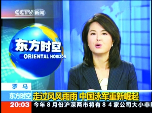 有意思的是,在进行游泳世锦赛的报道时,当张泉灵谈到张琳时,屏幕左上角就立刻出现一个画笔,动态地描摹出张琳的彩色铅笔画,增添了喜感,让人感觉尤为轻松。另外,主播语言“家常化”也是一个很明显特点。