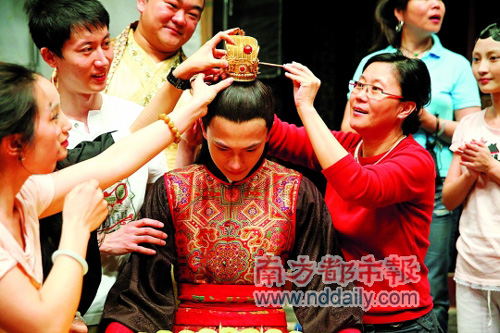 李少红执导的新版《红楼梦》历经一年三个半月的紧张拍摄,终于在昨日杀青。“宝玉”杨洋也在这一天迎来了自己的18岁成年生日。昨日,剧组杀青之日,导演李少红与近百名演职人员一起,为“成年宝玉”杨洋举行了热闹的成人礼。李少红亲手为杨洋摘下通灵宝玉,象征剧组正式杀青;随后,李少红又为杨洋戴上金冠,取意“加冠成人”(左图)。杨洋感动得语带哽咽:“18岁生日在剧组度过,我觉得很有意义。它对剧组的拍摄工作是一个圆满的终点,但对于我个人来说,却是人生新的起点。”