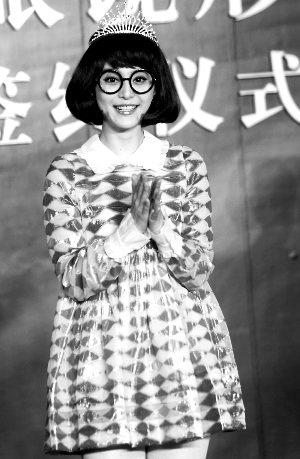 范冰冰昨天的造型和以往大不相同,有点土气的假发、复古的裙式上衣,鼻梁上还架着一副无镜片的黑框大眼镜。主持人认为这是“哈利·波特”的范儿,而范冰冰则纠正自己的造型是“阿拉蕾”(日本漫画人物),“今天心情很好,就自己设计了这个特殊造型。”俨然对自己的造型能力相当满意。昨天正好是范冰冰的生日,现场工作人员拿上生日蛋糕为她庆生,范冰冰捧着蛋糕许了三个愿望,并表示全部跟工作有关,“今天很开心,虽然有很多工作,但不觉得辛苦。我曾跟经纪人说,每年生日最好都要安排工作,这样我会觉得我下一年的工作会越来越好。”心情大好的范冰冰还称自己在个性上是喜欢黑暗的人,“收集太阳眼镜是我的嗜好,因为戴太阳镜上街让我很有安全感,我已经收集了五六百副太阳眼镜。”记者 王琳 邹红/摄