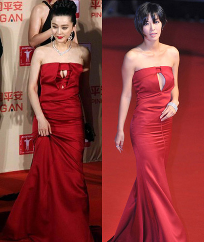 “朝鲜日报”消息,中国最炙手可热的明星之一范冰冰曾于6月13日在上海举行的“第十二届上海国际电影节”上,以一袭红色性感低胸礼服亮相红毯。而本月6日,在“第十四届釜山国际电影节”的红地毯仪式上,金素妍身着同一款礼服亮相,引起热点话题。金素妍凭借这身礼服,在釜山国际电影节上被评选为“最佳着装女星”, 彰显出超凡脱俗的气质。尤其是,中国媒体对两位演员的“撞衫”予以颇高的关注,称其为中韩女明星礼服大PK。