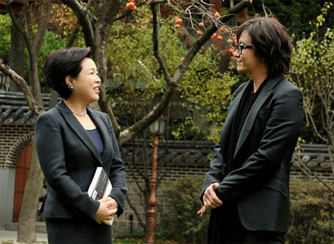 中新网11月11日电 韩国总统李明博的夫人金润玉女士11月10日在青瓦台与“韩流明星”裴勇俊见了面。金润玉是以韩餐世界化推进团名誉会长身份邀请裴勇俊。裴勇俊是推进委员之一。