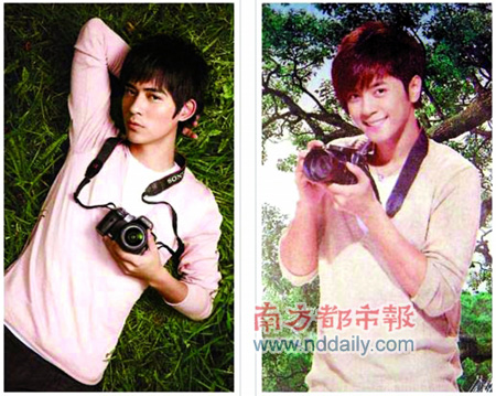 仔仔、小猪广告撞机又撞衫。“仔仔”周渝民相机广告已狂打一轮,还在捷运上高挂大幅广告牌,背着相机的模样非常抢眼,花美男味道十足,巧的是,“小猪”罗志祥这几天强打房地房广告,不论造型和V领浅色线衫,连背相机样子都和仔仔神似,经纪人蒋承缙表示:“广告走户外休闲风才背相机,男生衣服款式不都是那几款,难不成要他穿百折裙?”