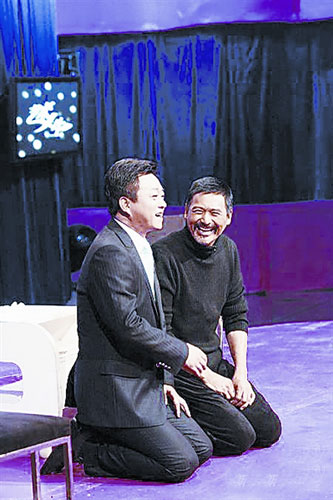 发哥上台的第一句话就和朱军谈起了他在书中看到的朱军父亲的故事,孝顺是沟通两个中年男人最好的寒暄语,于是节目一如既往的顺利,观众的掌声和笑声此起彼伏。发哥场上也不拿自己当外人,“擅自指挥”“关灯”,实施自己的节目计划,当发哥跪在舞台上,并倾情的讲述缘由的时候,朱军以同样诚意的姿势“还礼”。发哥执意要给朱军行一个叩拜大礼,叩拜的原因是朱军对仙逝父亲的孝顺,叩拜的是一种礼仪,更是一种精神,源于拍摄孔子数月的体会。这是我在《艺术人生》开播的9年中,见到的嘉宾中绝无仅有的表达方式,我们也被深深打动,这个对于中国人来讲,最重要的礼仪姿势,是绝对不能拿来娱乐的。我们也佩服发哥的胆量,我们尊重发哥,是因为他尊重节目,尊重了我们心中共同的诚意和精神。