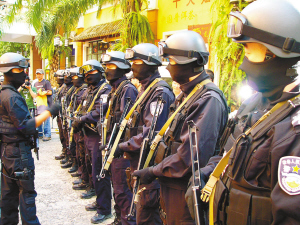 昨天下午,一队12人的特警走进片场,他们蒙着脸,穿着战术背心,戴着头盔和护目镜,这些身挎79式微型冲锋枪、腿挂92式手枪的特警,是剧组专门从景洪市公安局借来的,除了没装子弹,所有装备都是真家伙。