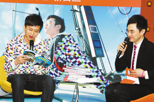 趁着图书订货会的东风,邓超昨日下午也推出了自己“超与超人”系列图书的首本———《超与超人·电影王国里的魔幻人生》,该书在北京王府井书店举行了签售活动,华谊董事长王中军也到场。邓超穿着一件“花衣裳”现身,他告诉记者,自己虽然出了书,但是文笔很差。