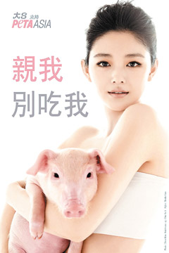 大S干脆替小猪取名“大大”,以纪念前年死去的狗,现在“大大”已经成为某人家的心爱宠物。另一个广告则是大S身着T-shirt,摆出撩人的姿势,以“我是素食主义者”为标语。