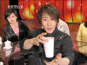 1.刘谦的魔术台边,赫然立着一桶某品牌的果汁。