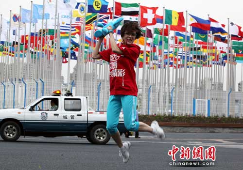 中新网5月7日电 5月6日,演员、歌手金巧巧轻装来到上海,搭上2010上海世博会首周游览的末班车。此行,金巧巧很是悠闲自得,随行仅一名助理,在接受媒体采访时她说,“北京在一场大雨之后天气热了好多,没想到上海更是热得不行。”