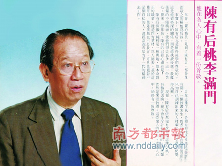 据台湾东森新闻网报道,香港资深艺人陈有后12日因病去世,享年95岁。话剧出身的“后叔”纵横香港演艺圈60余年,曾任TVB艺员训练班导师,周润发、杜琪峰、林岭东、吴孟达、汪明荃及万梓良都是他的得意门生。他参演的知名剧集包括《家变》、《狂潮》、《啼笑因缘》等,代表作为梁朝伟版《鹿鼎记》中的“神龙教主洪安通”。“后叔”于1992年告别TVB移居加拿大,后又回港安享晚年。去年罹患肺炎,身体状况不如早前,最终不敌病魔。为等待其亲友返港,暂定7月10日出殡。 记者黄晓雅