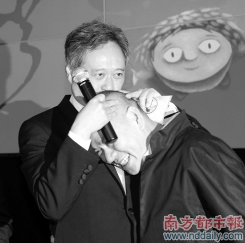 北京时间昨日凌晨,李安和蔡明亮在戛纳的“台湾之夜”上相遇。前者的新片《制造伍德斯托克》受到评论围剿,同时后者也被质疑在台湾没了市场才转投国际电影。这对让外界打起问号的大导演一见面就“惺惺相惜”。李安在蔡明亮的光头上亲了一下,蔡明亮也立刻回吻了李安,让现场气氛相当活跃。
