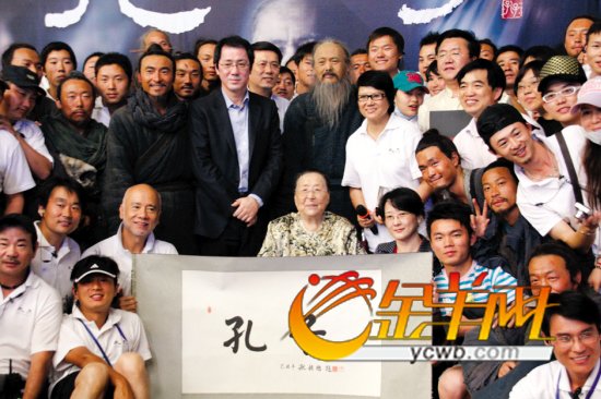 严谨的孔老用“周同志”来称呼周润发,引起现场一片善意的笑声。孔老还表示自己看过“周同志”之前的很多电影,是他的影迷,因此当初知道是由周润发来扮演孔子,她就松了口气。这次亲临现场看周润发演戏,更觉得他演的孔子形神兼备,甚至比自己当初想像的更加出色。她跟周润发反复强调:“让你来演孔子,是不会错的!” 但没能见到扮演南子的周迅和扮演孔妻的张凯丽,孔老略表遗憾。