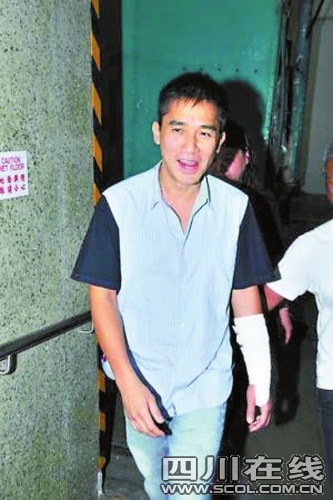 梁朝伟日前因练功弄至左手骨折,前日他伤后首度现身(如图)。手缠纱布的他,精神很好,不过梁朝伟坦言仍感到痛楚,即使吃止痛药也无效,要休养约四到六星期,才可以继续练功!当日梁朝伟复工是为杂志拍照。梁朝伟约一个半小时后离开摄影楼,记者问梁朝伟如此快完工?他表示:“他们都不想我那么辛苦,(何时继续练功?)现在都停下来了,要等手好了为止,最少要痛一个多星期,不痛的时候都可以练一些基本功,如跑步这些运动,其他就要等手好了才可以练习。”