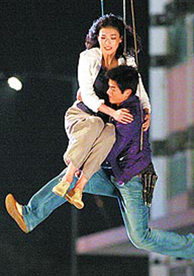 为了吊钢丝的惊险戏码,电影公司贴心为城城、舒淇安排替身,但2人大部分仍敬业亲自上阵,为求安全,拍摄前都戴上护具做好安全措施,并试戏2、3次才正式开拍,过程大都安全顺利。