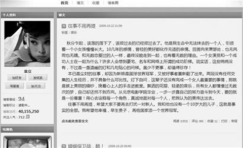 袁立昨晚在博客上首次回应与张怡宁新婚丈夫徐威的旧日恋情