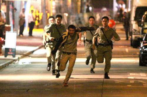 据悉,林超贤指霆锋在戏中驾驶的只是普通车,并非跑车或是战车,不过前晚剧组安排了十多位临时演员拍摄追斩戏份。期间,不少路人拿出相机及手机拍摄,甚至不惜爬高拍照。留了胡子的谢霆锋则于凌晨十二时许到场,现场有真警察维持秩序,霆锋拍摄时显得相当投入,走位前在街口试位,也用对讲机与工作人员沟通,指手画脚。至于桂纶镁为配合戏中赌徒角色,头发染了少许红色,衣着也有少许性感露出小蛮腰。她与谢霆锋在街头来回跑了四次,每段路距离甚长。当谢霆锋不用走位时,也特意在旁边休息,吸烟及吃宵夜,期间,有外籍游客行过问路,霆锋也指点对方,并叫记者及游人拍照时要小心一点,说:“兄弟,不要开闪光灯。”生怕影响拍摄进度。