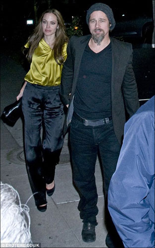 34岁的朱莉身穿黄色丝绸上衣配搭黑色丝绸裤子,脸上一直洋溢着幸福满足的笑容。而46岁的皮特则身穿深灰色夹克、黑色V领T恤和牛仔裤,两人坚定相牵的手似乎也在回击着传言。