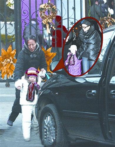 近日,记者来到位于INTEL大厦的章子男居所附近,恰巧赶上章子怡之前使用的那辆黑色道奇驶出大厦,记者便跟了上去。该车最终来到位于望京的某小学门口,而后一中年女子迅速下车,站在门口开始向校园内观望。没过多久,一个穿着一袭白衣的小女孩向中年女子跑了过来,该女孩就是章子男的女儿。中年女子未作停留,迅速将女孩领到了车内,随后一溜烟离开。