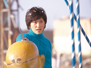 林志玲性感曲线无影无踪,取而代之的是胸部下垂、身材走样,一头沾满鸡毛的邋遢短发,脸颊上两朵典型的西部高原红,妩媚一笑露出满嘴黄牙。再衬上套袖、粗布裤子和花毛衣,与昔日高贵温婉的志玲姐姐完全判若两人,而与《秋菊打官司》中的巩俐颇为神似。记者 聂晶