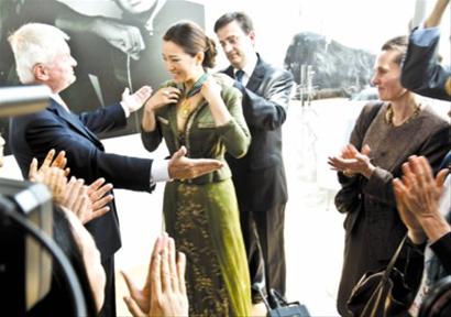 在2010年上海世博会园区充满浪漫气息的“感性城市”法国馆内,法国驻中国大使苏和宣布,授予国际著名影星巩俐法国艺术及文学勋章。
