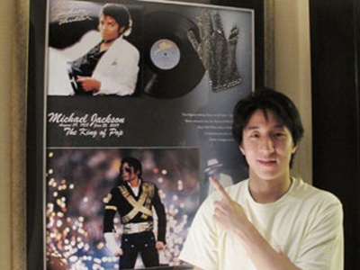 说到偶像杰克逊,房祖名校说:“从小我就是他的粉丝,他的太空漫步舞步、还有BEAT IT的经典动作等等,都让我着迷,直觉得他好酷!小时候我很爱在爷爷面前大跳这些舞步呢!”房祖名特地将银手套用相框裱起来,“其实我好想戴一下银手套,不过舍不得而且也不想破坏偶像杰克逊的痕迹!”