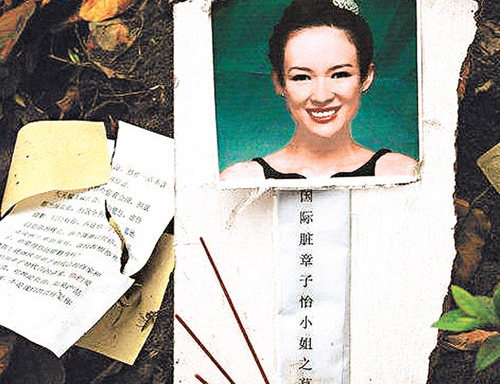 中新网6月6日电 据香港媒体报道称,内地一网站张贴了一张章子怡被人恶搞的相片,图片显示在成都一个公园的垃圾桶旁有一个贴上章子怡相片的“墓碑”,相片下写了“国际脏章子怡小姐之墓”,坟前亦有烧完的香烛以及悼辞,但悼辞全是辱骂章子怡的字句。