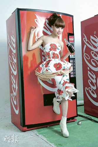 中新网5月20日电 据香港《明报》报道,容祖儿早前为可口可乐唱的广告主题曲《开动快乐》拍MV。MV中,打扮成70年代日本摇滚少女的祖儿与“快乐工厂”各成员劲歌热舞。