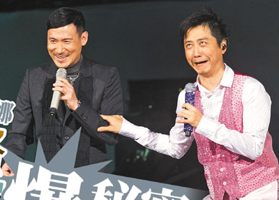 中新网1月11日电 庾澄庆(哈林)演唱会前晚在香港红馆开幕,大邀来好友张学友活跃气氛,两人又扮乐器合奏,又互笠高帽,最后学友送上一曲《寂寞的男人》寄语已离婚的哈林告别烦恼,成为全晚的高潮。