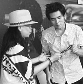 周杰伦22日在签唱会为高雄粉丝独唱《超人不会飞》,并为现场数千名粉丝埋头苦签,张惠妹居然伪装成歌迷排队拿专辑给周杰伦签名,让周杰伦大吃一惊。