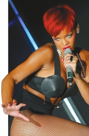 当地时间6月5日,蕾哈娜在西班牙马德里附近小城阿尔冈达·德·雷伊举行个人演唱会,蕾哈娜红发造型亮相,吊带Bra仿佛锅盖扣在胸前,三角裤配网袜服装也显得相当狂野。(春城晚报)